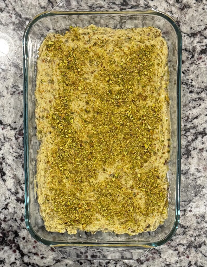 - Top with the remaining chopped pistachios.
