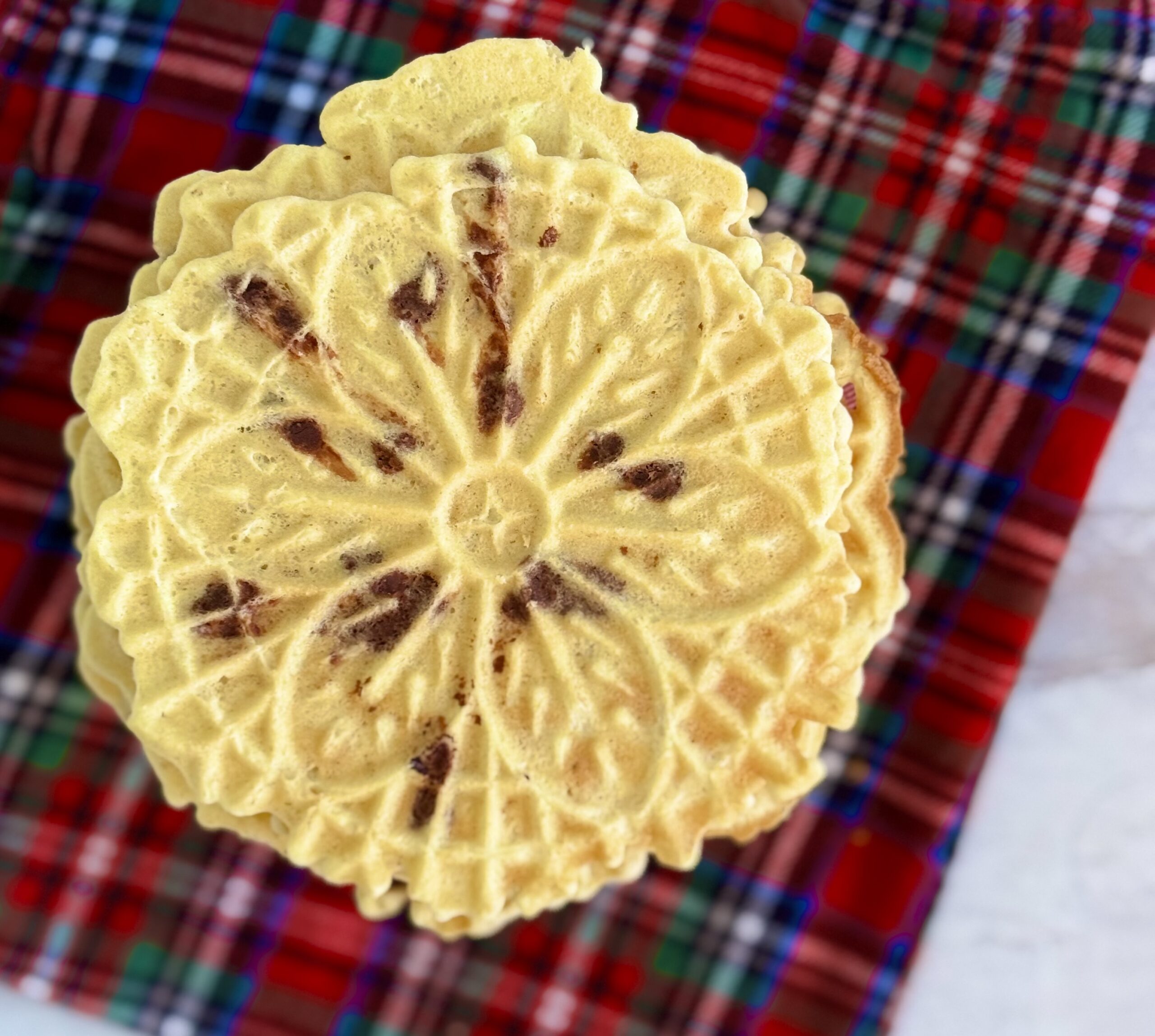 Chocolate Chip Pizzelles a twist on the traditional Italian favorite! Made with mini chocolate chips ...